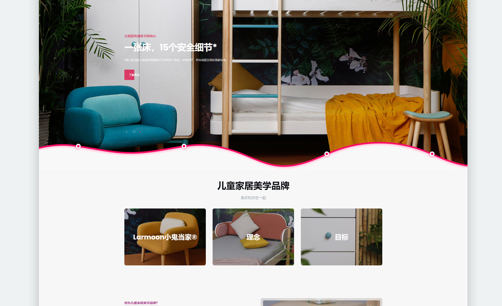 Larmoon小鬼當(dāng)家?由上海匠木家居攜手丹麥Design House事務(wù)所等機(jī)構(gòu)共同打造,中國首個(gè)以設(shè)計(jì)為主打的專業(yè)兒童家具品牌。產(chǎn)品覆蓋少年兒童日常生活所涉及的家具、布藝、玩具、文具、家居飾品等,為全球家庭提供安全、環(huán)保、美觀的一體化生活兒童家居方案。