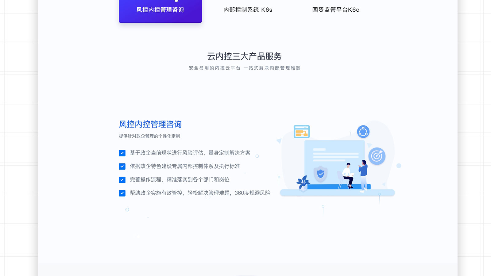 云內(nèi)控是集風(fēng)控內(nèi)控管理研究、咨詢、信息化應(yīng)用于一體的專業(yè)機(jī)構(gòu)。團(tuán)隊(duì)專注政府管理體系研究與服務(wù)15年,是面向政府、事業(yè)單位、國有企業(yè)的數(shù)字化內(nèi)控風(fēng)控解決方案供應(yīng)商,提供系統(tǒng)化、專業(yè)化、個(gè)性化的管理咨詢及信息化服務(wù)。真正讓“風(fēng)險(xiǎn)控制變得更簡單”。