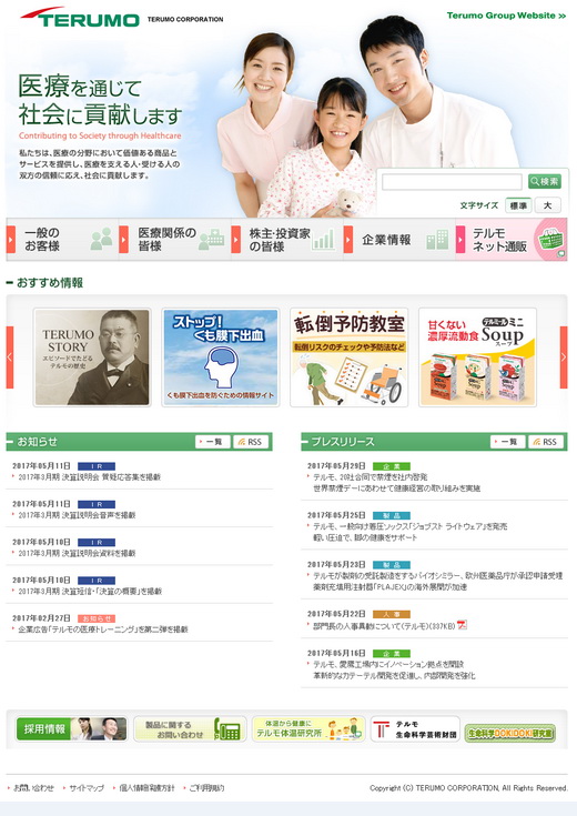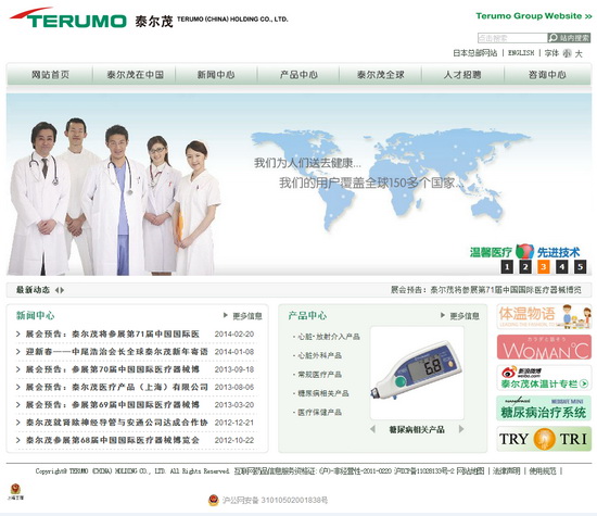 泰爾茂株式會社成立于 1921年,產(chǎn)品包括一次性醫(yī)用器械、輸血用具系列、醫(yī)藥品類和營養(yǎng)藥系列、血管造影與治療用導(dǎo)管、醫(yī)用電子產(chǎn)品系列、人工心肺產(chǎn)品系列等。泰爾茂的產(chǎn)品已在全世界150多個國家和地區(qū)被廣泛使用。