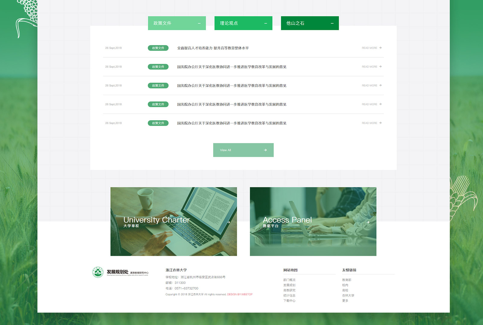 Hangzhou Weituo Technology has reached a cooperative relationship with the Development Planning Office of Zhejiang A&F University on the development and construction of the official website.