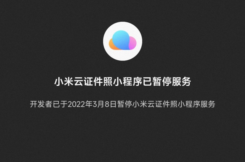 小米推出的小米云證件照小程序已暫停服務(wù),提示“開發(fā)者已于 2022 年 3 月 8 日暫停小米云證件照小程序服務(wù)”。