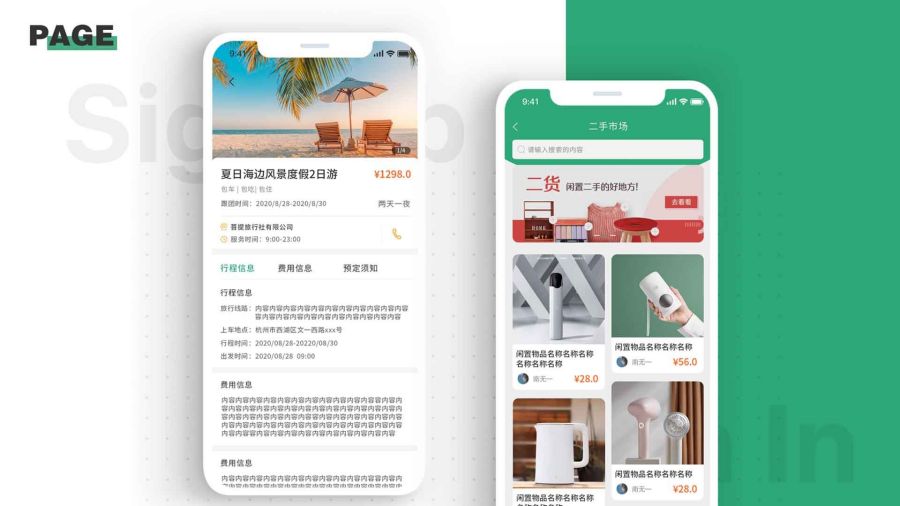 在設計中顏色以綠色為主白色為輔清新、年輕、有活力。一目了然的菜單分欄,提升了網(wǎng)站內(nèi)容信息的視覺層級,更加方便用戶快速尋找自己需要的內(nèi)容,頁面過渡平滑自然,便于用戶瀏覽。小程序在功能開發(fā)上包括了體檢、旅游、二手交易各個適用于生活中的功能。