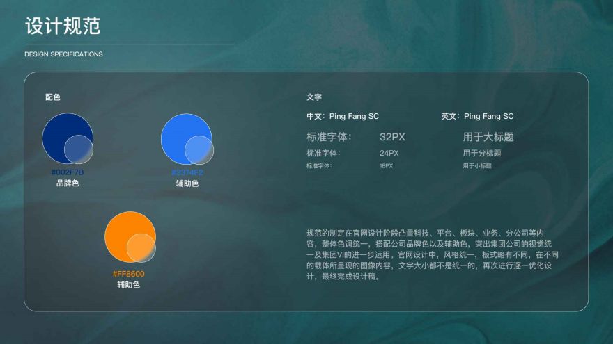 在設(shè)計(jì)過(guò)程中,規(guī)范的制定在官網(wǎng)設(shè)計(jì)階段凸量科技、平臺(tái)、板塊、業(yè)務(wù)、分公司等內(nèi)容,整體色調(diào)統(tǒng)一,搭配公司品牌色以及輔助色,突出集團(tuán)公司的視覺(jué)統(tǒng)一及集團(tuán)VI的進(jìn)一步運(yùn)用。官網(wǎng)設(shè)計(jì)中,風(fēng)格統(tǒng)一,板式略有不同,在不同的載體所呈現(xiàn)的圖像內(nèi)容,文字大小都不是統(tǒng)一的,再次進(jìn)行逐一優(yōu)化設(shè)計(jì),最終完成設(shè)計(jì)稿。