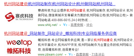 下面杭州網(wǎng)站建設(shè)--帷拓小編就來(lái)說(shuō)說(shuō)怎么區(qū)分關(guān)鍵詞排名是競(jìng)價(jià)還是優(yōu)化。前面我們說(shuō)到優(yōu)化,網(wǎng)站建設(shè)好后就要開始做優(yōu)化的工作,把自己想要推廣的關(guān)鍵詞做到首頁(yè)。那么,怎么看呢?下面我們就百度優(yōu)化頁(yè)面來(lái)說(shuō)明一下,頁(yè)面主體有兩部分最重要:一是廣告,二是自然搜索的結(jié)果。如圖所示,標(biāo)有推廣連接的都是廣告。左側(cè)最上面有3個(gè)廣告位,最下面(相關(guān)搜索之前)有三個(gè)廣告位,右側(cè)上部分是來(lái)自知心搜索的相關(guān)詞匯等,下面是4個(gè)廣告。大部分的人都最大右側(cè)顯示的都是廣告位,所以右側(cè)廣告位沒有加特殊底色。頁(yè)面左側(cè)廣告位都加淺底色,可以和自然搜索結(jié)果較清楚的分開。